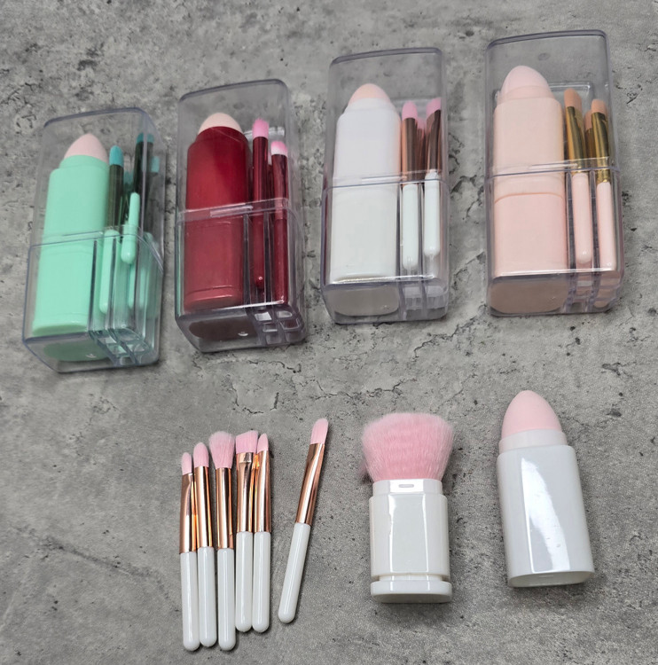 ست براش استند دار مسافرتی کم جا ۶براش کوچیک یک براش بزرگ و پد تخم مرغی