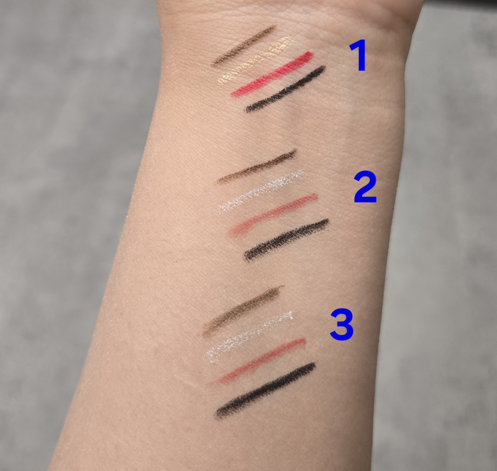 – خط چشم، خط لب، مداد ابرو و هایلایتر